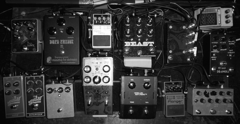 I thought it would be cool to have a thread showing boards with INDUSTRIALECTRIC pedals on them :p :cool: Here is one from robapov and his band The Shape. Rocking the Incinerator! :rock: :animal: :hug: