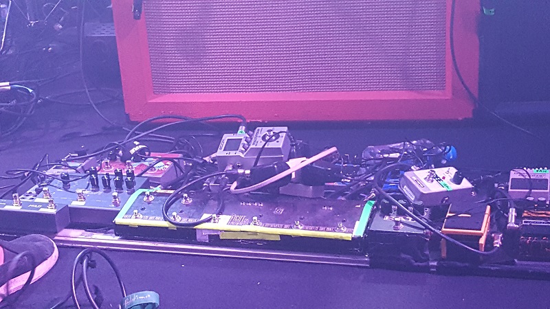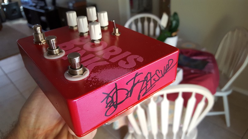 I went to the merch table, and there was the Super Special Pink on Pink ECT. Beautiful. I went and got cash from the ATM and promptly bought it and a Pink tshirt. I asked the girl running the table if the band ever hangs out to mingle for photos or signings, and she says no, because later in the tour they have scheduled meet'n' greats. She goes, "Why? do you want the pedal signed? Because I can take it in the back and get it signed."