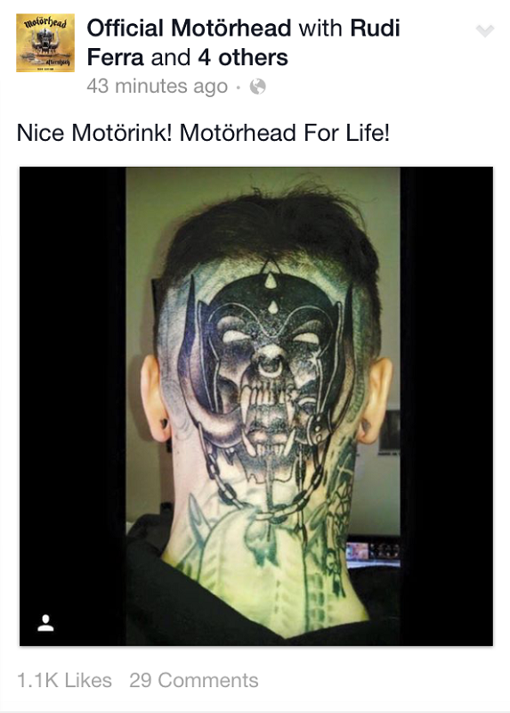 I don't really have any pics of my tattoos but Motorhead shared this after I got it done a few years ago and I was excited enough to screen shot their post.