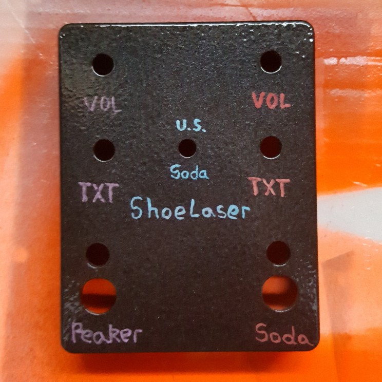 The shoelaser is just a soda meiser into a Torns peaked, and when I built my soda a year ago I built a transistor swapper for the last stage. It's a USA fuzz when it's oriented one way and a soda when you flip it, so it's on a toggle and I figured I'd include that functionality.