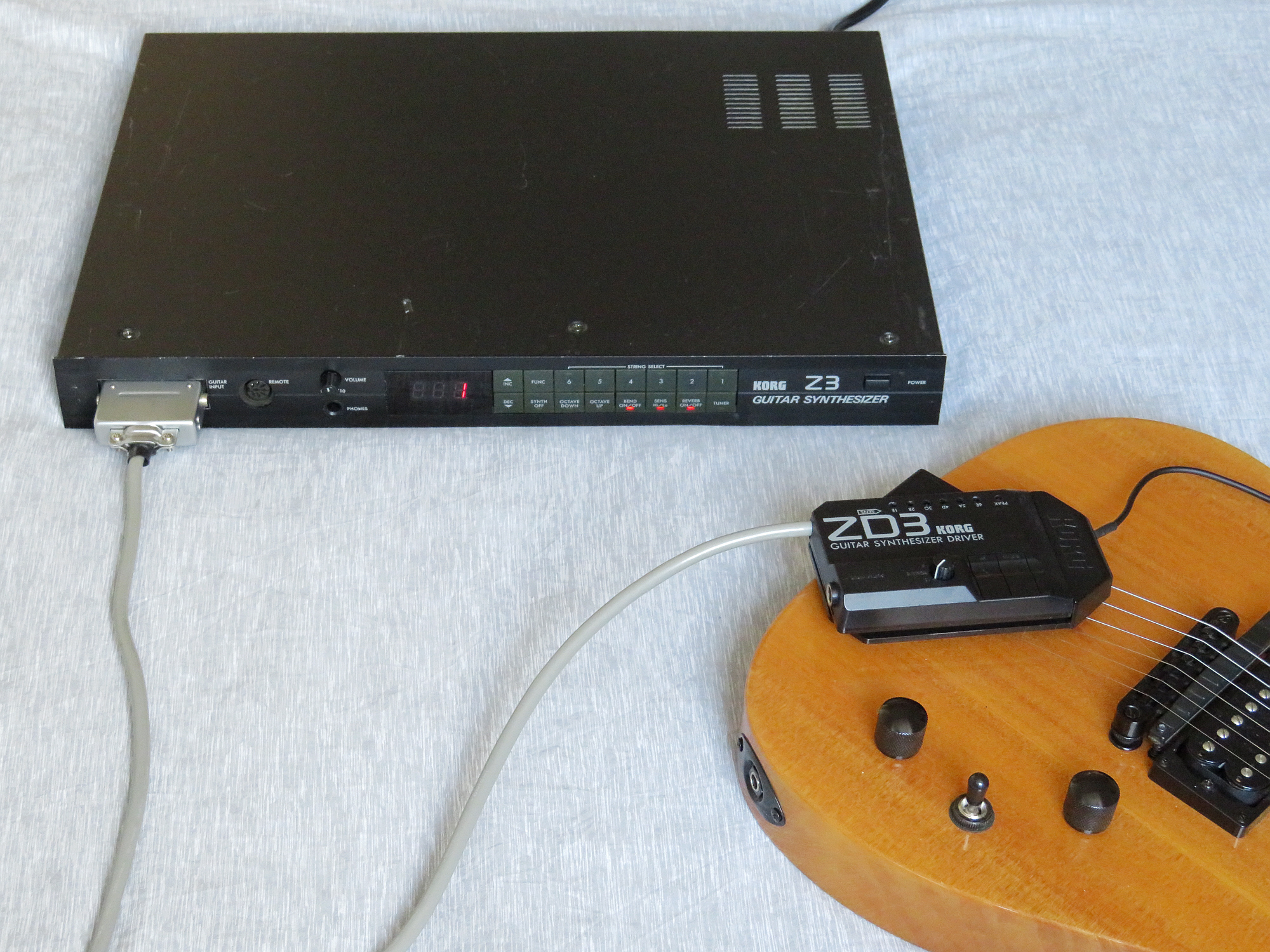 Hiroaki Nishijima, the designer of the legendary KORG MS-20 and of my beloved multi effects system, the KORG PME-40X, has also designed this polyphonic and sophisticated guitar synthesizer, the KORG Z3. It is a 4-OP FM synthesizer and it can be triggered by the dedicated Z3D Driver with the special hex-pickup. A few weeks ago I knew nearly nothing about it, but having read more about it, I took the plunge and bid on an ebay auction - that I won in the end. I had to install a new power cable (the previous owner has shortened it significantly) and I had to order a few black screws, springs and spacers to install the special pickup system in my Dean Vendetta 1.0, my only other electric guitar besides my MIJ Fender Stratocaster.