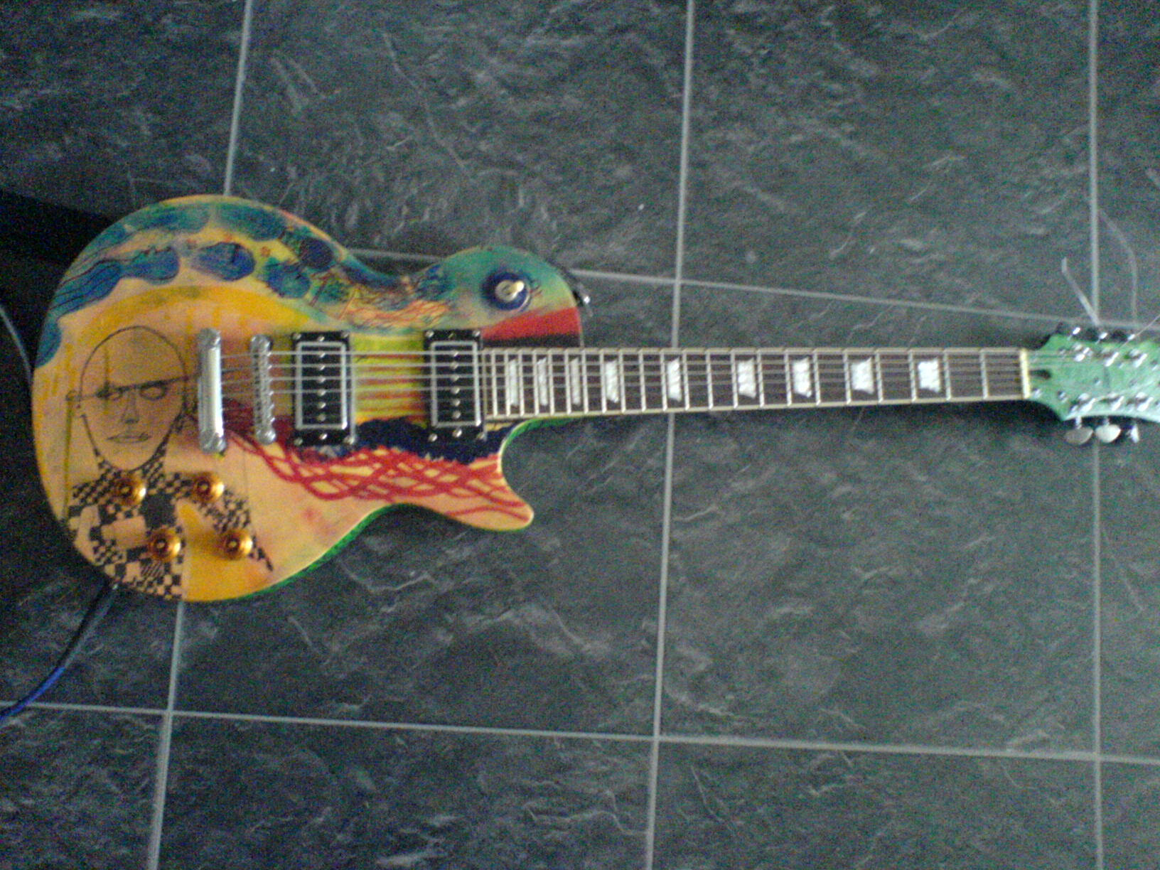 It´s an Epiphone Les Paul Standard painted by an artist friend of mine. I´d like to paint it myself, but suck at painting and the job my friend did is so excellent. Overcoats and everything.