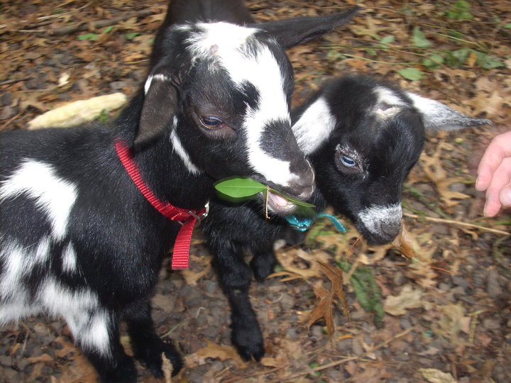Here's my own boys; they're older and rammier now and I bet they'd love to get a head bang on with your caprine companion there....