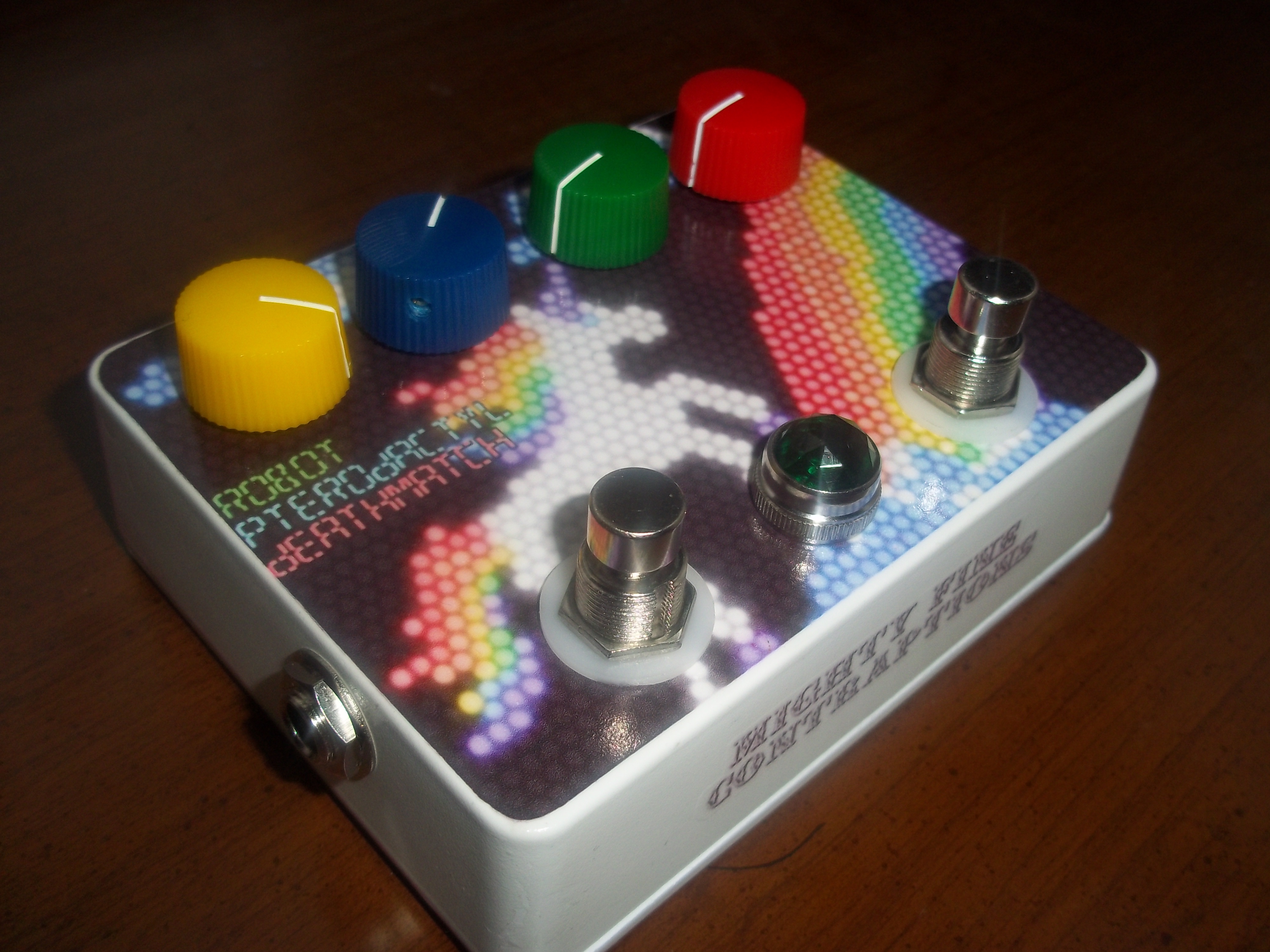 It's called the Robot Pterodactyl Death Match and Rygot built it for me because he is a bro (and I had an electric mistress he wanted). It's a shin-ei fy-2 with a two stage big muff tone stack, a booster, and a mids trim pot that goes into a green ringer for max boner toanz.