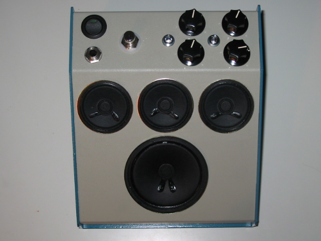 Metal chassis, 3 x 2" speakers and 1 x 3"er, 2 channel, clean was simple booster circuit and dirty was a Frazz