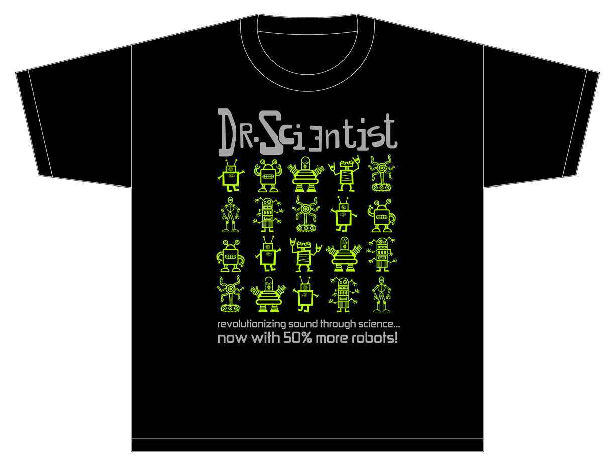 Everybody who submitted a t-shirt will be rounded up in cages and interrogated for their address and t-shirt size so we can send them a t-shirt. The winner will be forced to choose his or her favourite Dr. Scientist pedal and finish and then also give us their address and t-shirt size.