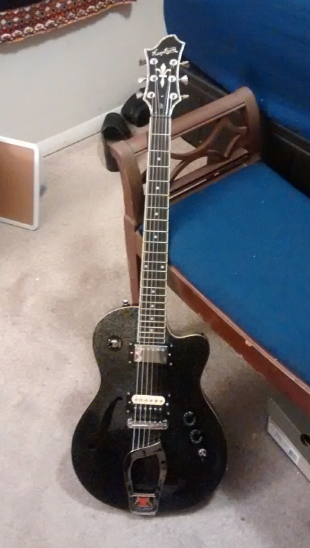 Hagstrom D2F: It's got a custom Buddha pickup in the bridge and a GFS Vintage 59 in the neck.