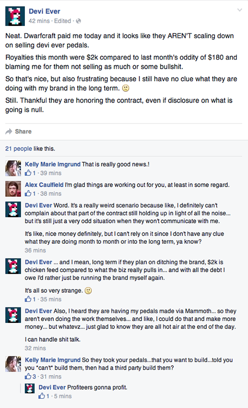 She has confusion about a 3rd party building her pedals but she used to have Oohlala build her pedals under license.