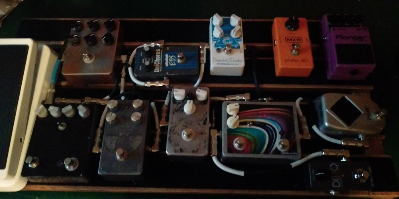 Jazzmaster -> VP Jr -> Polytune -> iStomp -> Procession -> Velvet Fuzz -> KTR -> LS-2 (iRig stom under the board linked to my iPad that I essentially use for iMini with Loopy HD and Flux::FX) -> e616 dark -> BitQuest! -> amp (AC4 at home/ AC15c1x)
