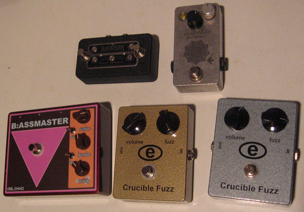 Other than the etched pedal which is a Germanium-based Fuzz Face clone that a friend made for me, you know what the rest of these are. OK, maybe except the Blackstone in which case shame on you.