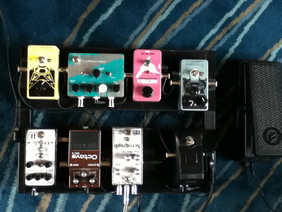 Not many changes since last time, in fact I've gotten rid of a few pedals without adding anything. But I have an awesome new pedal rug! It's like playing in an enchanted forest. Enchanted with fuzz and delay.
