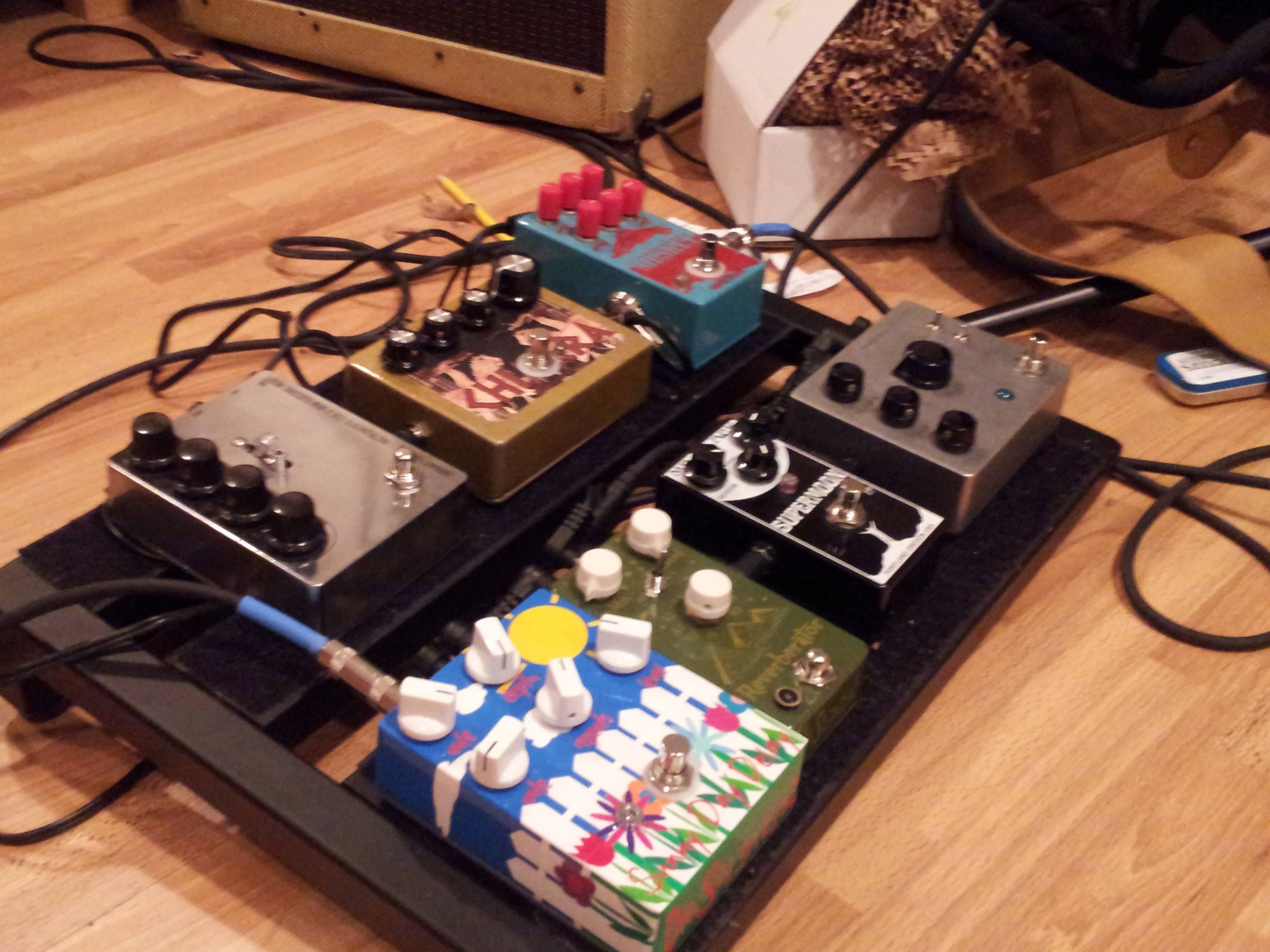 hiorgos wrote:My first pic here. The board, as you guess, has had infinite changes through the years, but there are some pedals that keep staying on it. Astro tone, DL8, Vibe are favorites. And the Small Stone is almost always ON these days!.