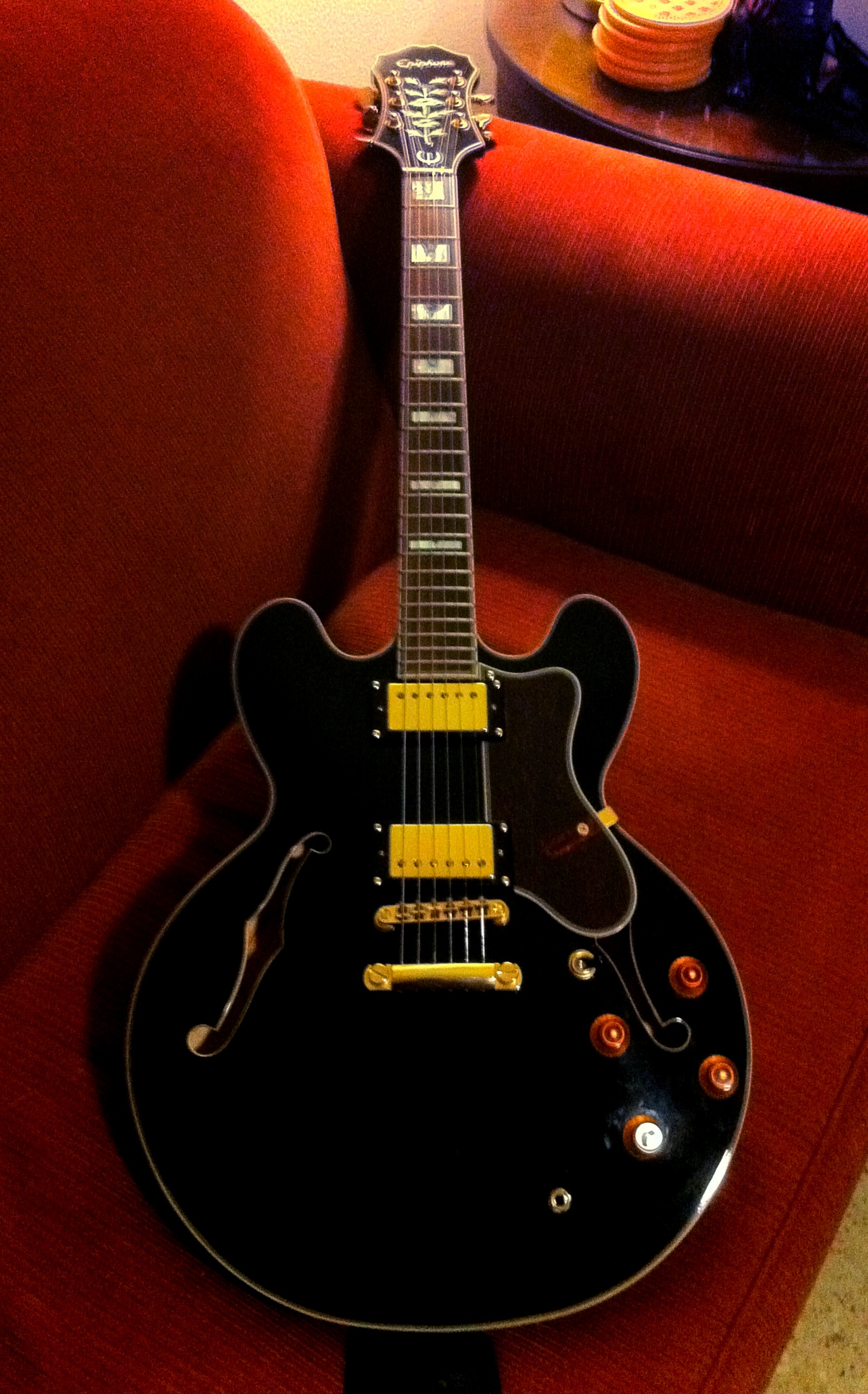 Got rid of the shitty mightymight neck pickup that I never used, put in a Fitertron, rewired the whole thing, Pete from Guitarorama who built the thing for me years and years ago really did some weird shit in there that never worked right... so I wired it normal. It sounds so much better... looks cooler too.