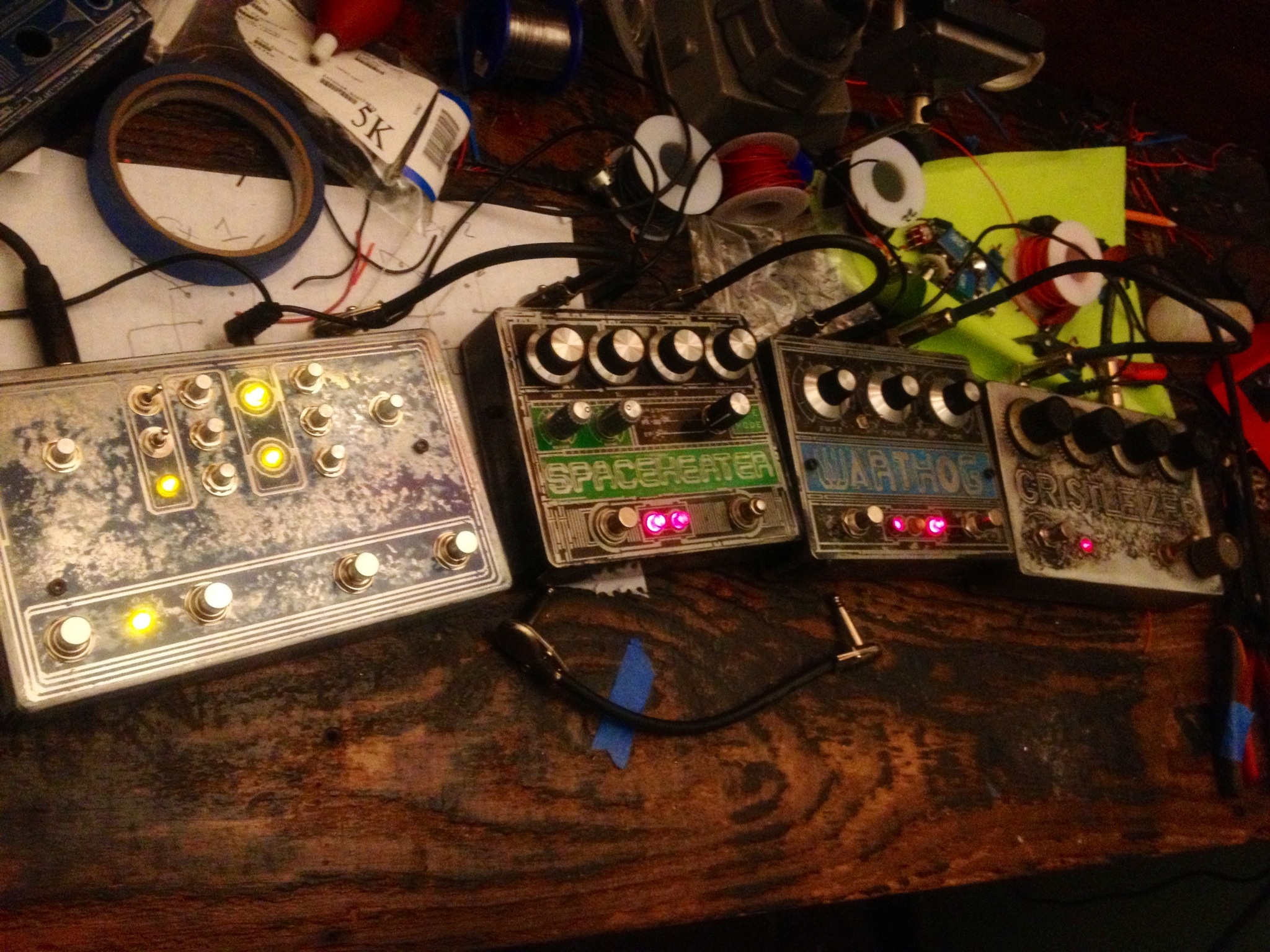 Played with this setup for awhile last night. Some great space fuzz sounds! Gristelizer ---> Warthog ---> Multiplex ---> Pharoah/FTM