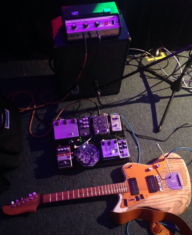 Travel gear and a $35 pawn shop amp. The thing is beefy as hell, might as well be a bass amp. Also, it's loud for a 1x10. I kind of want to keep it because it starts to get dirty almost right away and the speaker breakup is so rattly it'll make a great bad amp. The cheap pickups I have on the guitar aren't helping, but the amp only starts to sound normal tone-wise with both the mid and treble boost, otherwise it sounds like a guitar through a bass amp.