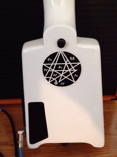 Here's the only sticker I have on a guitar right now. I tend to horde my stickers because I can never decide on the best place to use them.