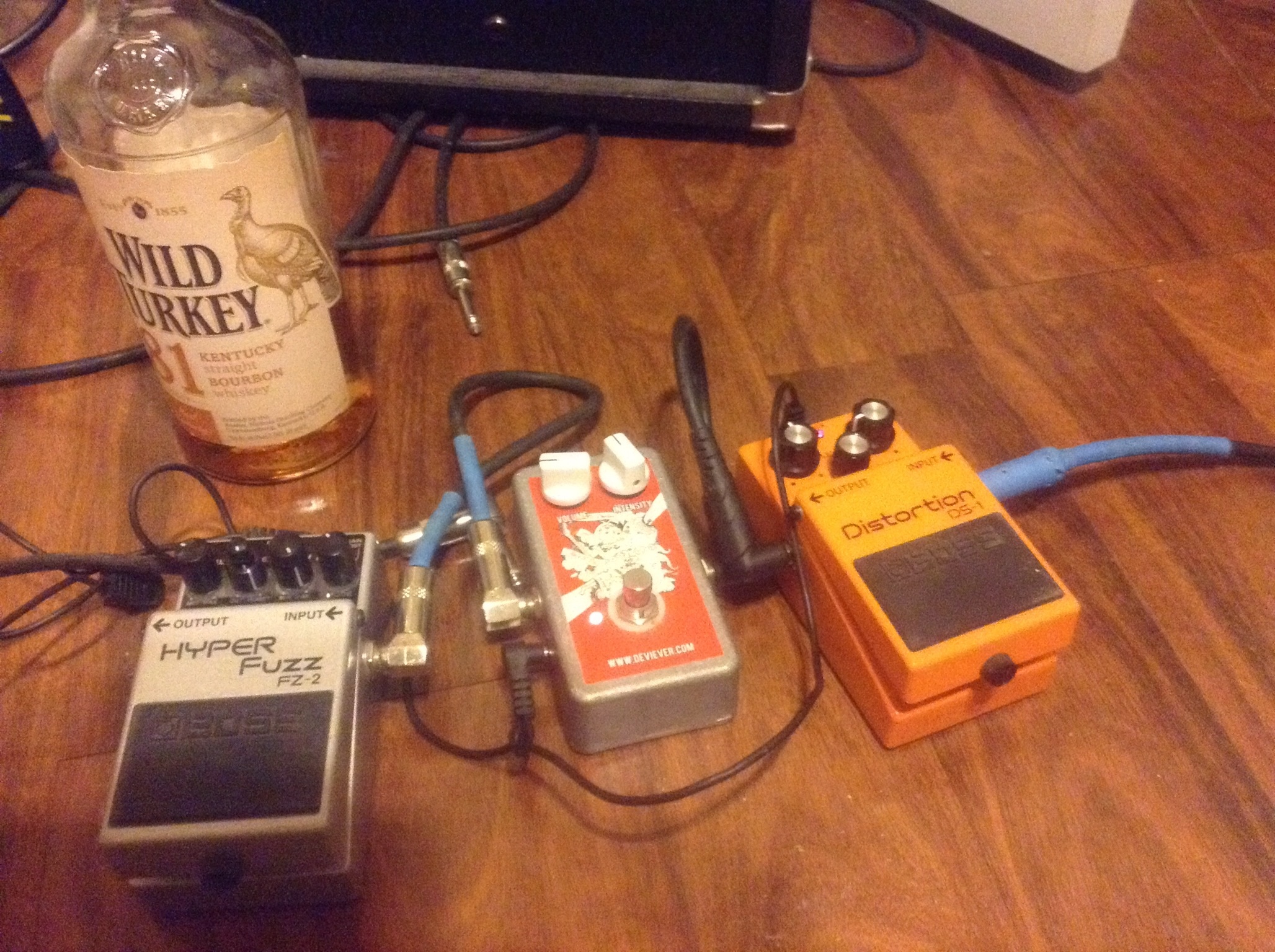 Personally, I'd ditch the other three pedals and just use the Wild Turkey. SICK FUZZ TONEZ.