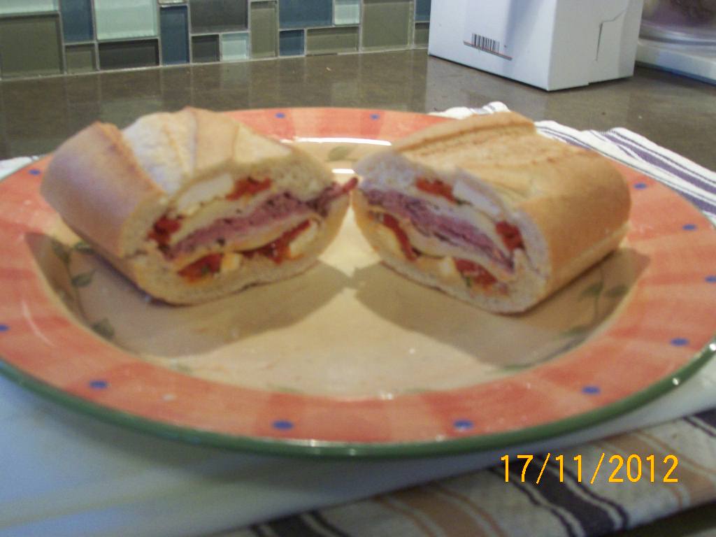 I made this sandwich the other day. Feta, roasted peppers, olive oil, provolone, swiss, turkey, and roast beef on a baguette. I took the picture because of how proud of myself I was.