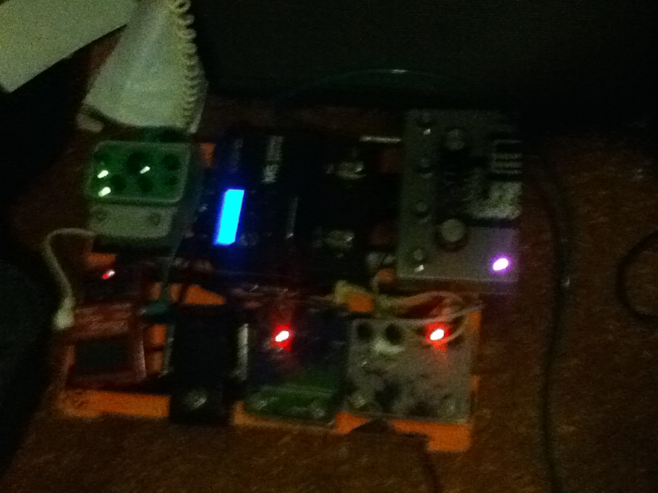 Top of the case is for harsh noise - candy box is a DIY noise generator my friend made me, usually run through the Muff/DS1 > Memory Man.