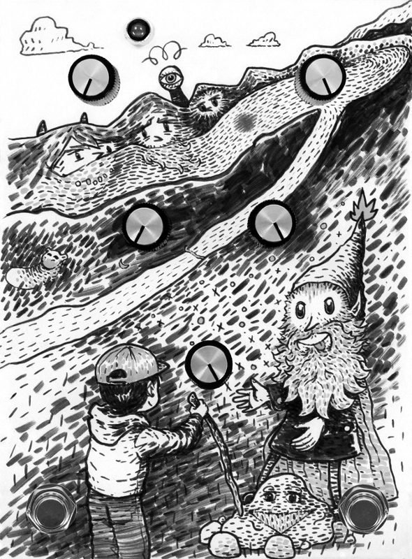 drawing i did a while back and then added knobs to...some kind of fuzz with feedback switch?
