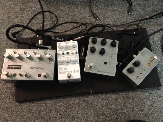 bigchiefbc wrote:So, here is my latest rearrange on the big board. The bottom middle spot is just waiting on a pedal build that's in progress. But other than that, I feel basically satisfied with this setup.