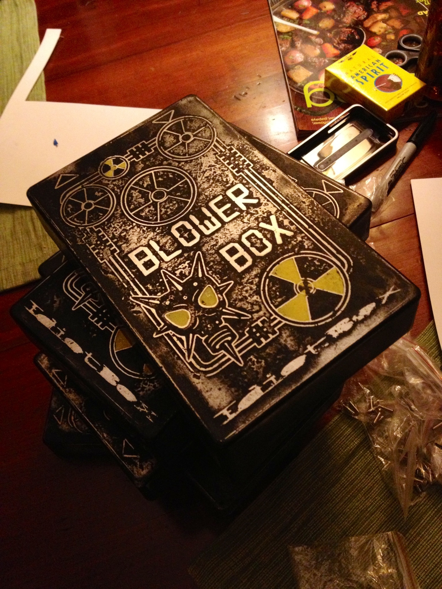 Partial stack of the 13 Blower Boxes owed to Matt from Idiotbox. They came out mighty fine. By Friday or the end of the weekend I hope to get Kosta's FSH's done and Oldangelmidnight's rehouse done. Once those are done (hard ones), I can start banging out the rest of the list, work on the PLL, and work on a parallel fuzz called the Whitewalker. It's gunna be a fuzzy fall...