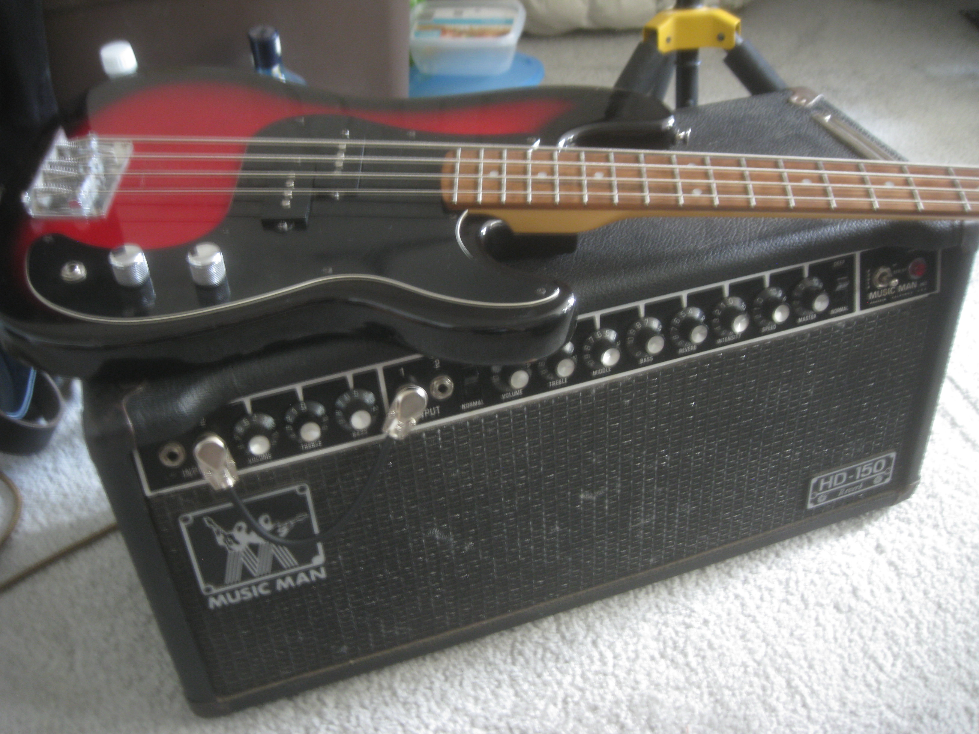 I've already posted about the amp, but yeah. Got a Music Man Hd150 and Hondo Shortscale over the weekend. Amp sounds nice and dirty, the Hondo is pretty gnarly too. Pickup is hotter than whatever SD is in my regular P bass.