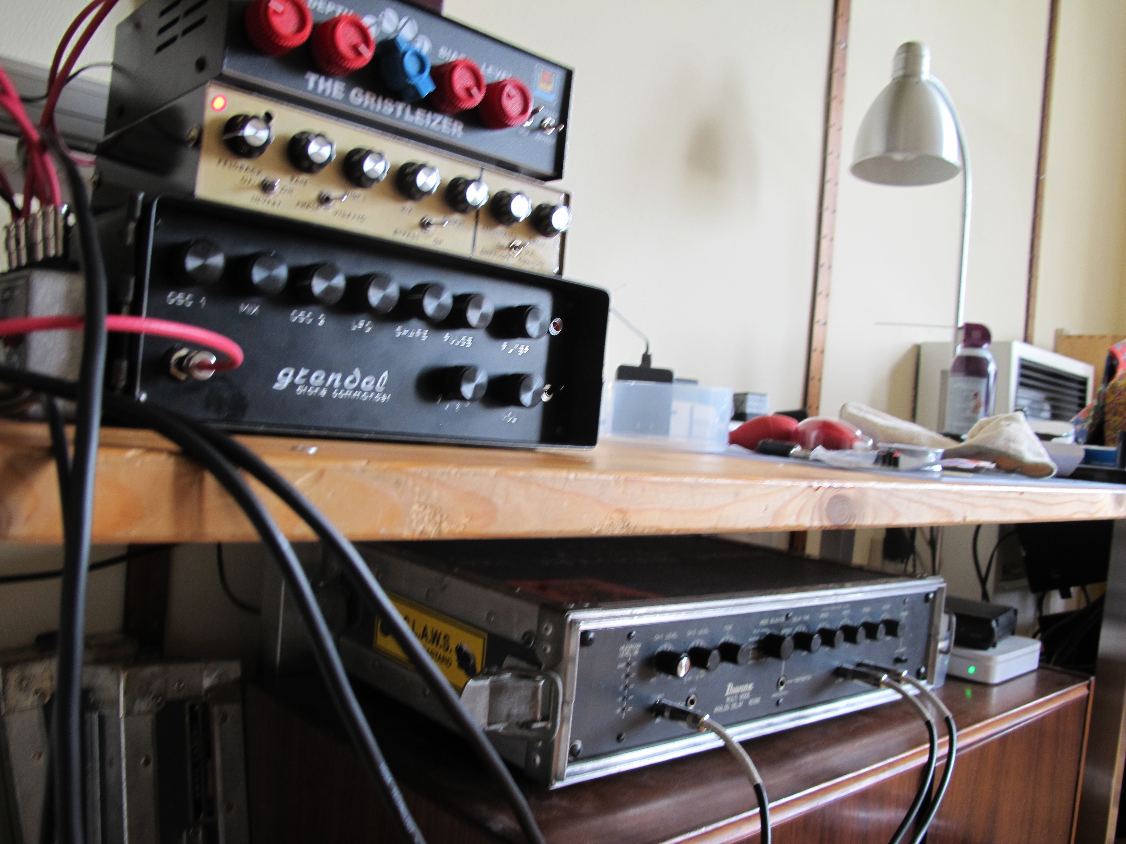 Grendel Drone Commander, Endangered Audio Gristleizer, Home-made (not by me) Phaser/ Vibrato/ Envelope, MXR Stereo Tremolo