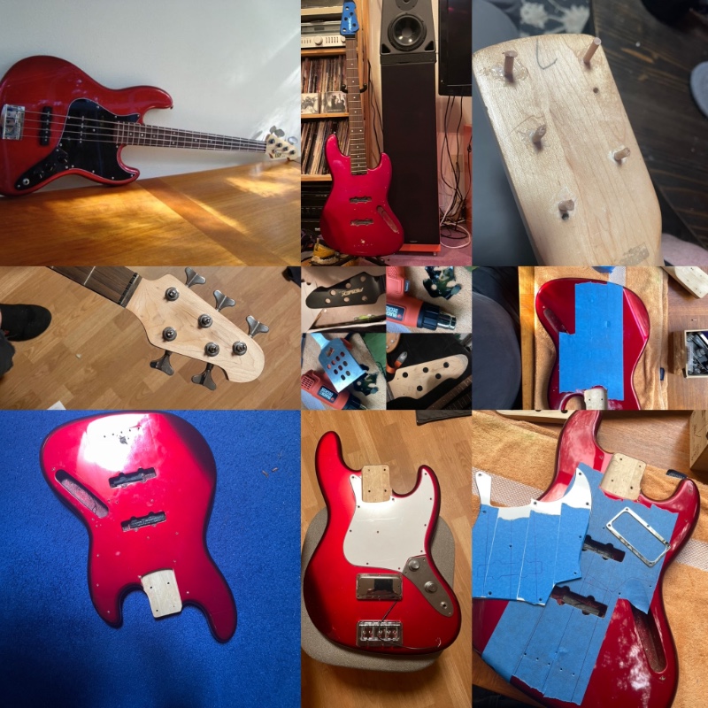 Next was deciding on a body… I have a bunch… but because I did not want to finish anything or buy anything and Mike lull kept showing up on my instagram feed.. I settled on a 1989 MIJ fender jazz I’ve had for years… it was posted a very long time ago in my non-alt-personality with a 1980s ESP neck.. sadly that neck warped and even with the trussrod maxed is unplayable (the fun of used necks). The other idea I had other than and then in combination with the tbird pickup was a widerange bass pickup like on a 70s tele bass.. so I contacted Sonewall pickups since they said in their description to hit them up for custom stuff like a five string version… after asking about string spacing they never replied again after multiple attempts to communicate and several weeks.. so plan B.. I contacted Rio Grande and ordered a five string pitbull muygrande custom over wound to the physical limitations of the bobbin size