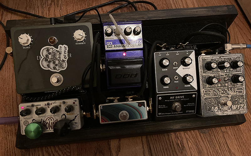 Rearranging my board with the "usual suspects" for an upcoming doom metal/noise gig.