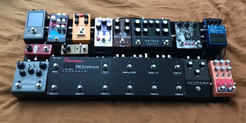Mellowtone Hi Five clean boost->Catalinbread WIIO v3 Hiwatt emulator->Ibanez LF7 LoFi->Stomping Stones Virus->Analog Music Co. So High So Low high pass/low pass filter->Fairfield Circuitry Shallow Water modulator->(Wardenclyffe Mini goes here)->Fjord Fuzz MIME reverb->Farm Pedals Expanding Universe reverb.