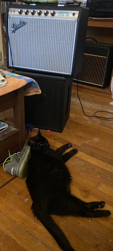 excellent cat. here’s my Otis laying next to the Princeton Reverb on top of the 1x12” cabinet with the Weber JBL clone. he also likes my shoes so this is a double win for him.