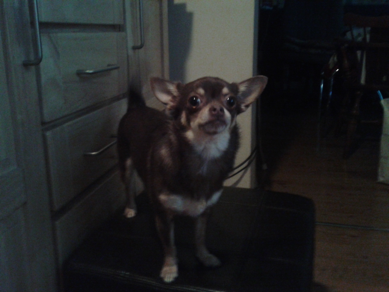 Ginger guarding the kitchen-