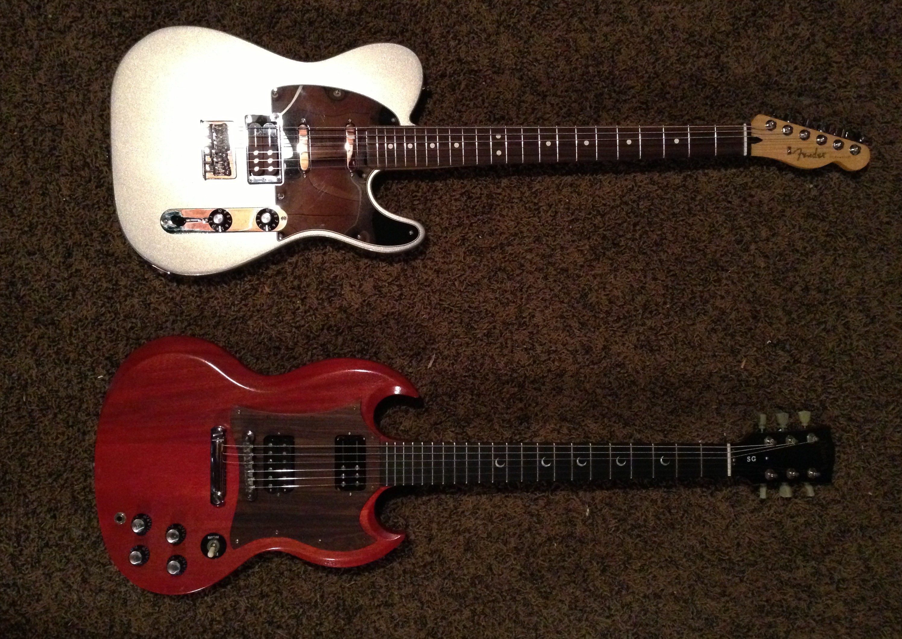 Blacktop Baritone is new (swapped humbucker out for Railhammer 'Anvil'), SG was my first guitar (now with RH 'Chisel' in neck and clashing wood replacement pickguard). Good times.