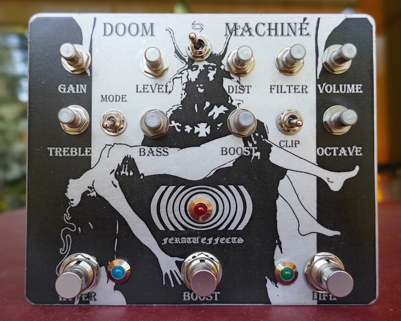Here's my first 2-in-1 pedal, HyperFuzz FZ-2 & Life Pedal with an order switch, PCBs from pedalpcb, the DOOM MACHINE.