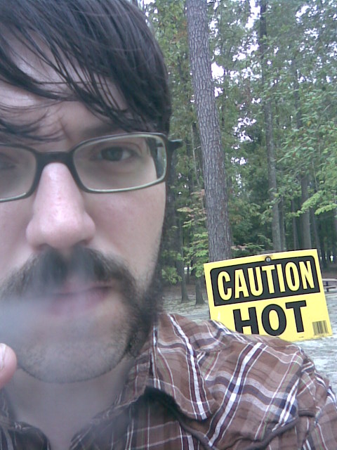 I took this photo of myself a couple weeks ago when my band was at a rest stop in West Virginia. Couldn't resist the pure ridiculous MySpace photo opportunity.