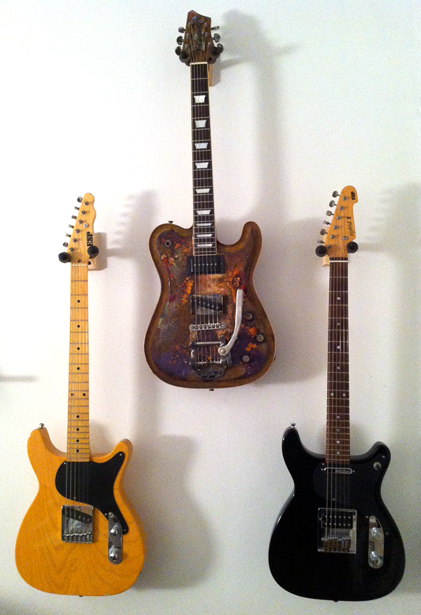 I dig that Tele in the middle with the block inlays and the P-90. That's a unique piece! Cool.