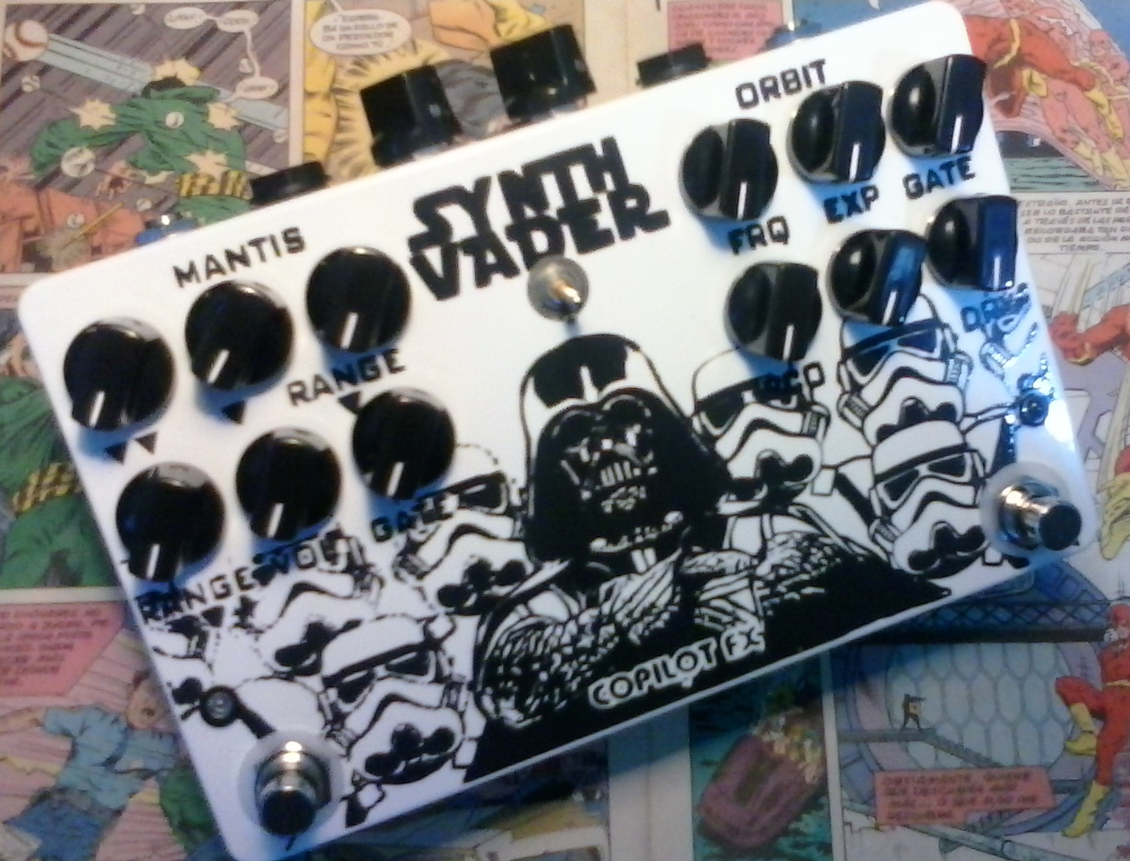 Sith Youth Orbit, crazy one, it has independent vol for dry signal, fuzz signal and vco signal, second footswitch activates a square wave tremolo to cut the signal mix on and off of the 3 voices (or one voice or 2 voices depending on how you set the vol knobs), also extra toggle to add modulation to the vco frequency.