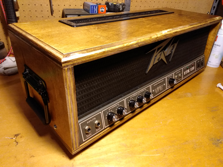 I already posted this amp but when I first got it the case was bare wood. I finished it with some poly and added handles, vent, and new knobs. Diggin it.