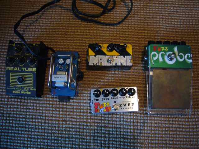 Tube Works Real Tube (busted or bad tube), Zvex Amp, Zvex Machine, Zvex Fuzz Factory, Zvex Fuzz Probe