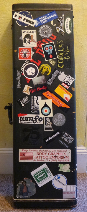I love seeing everybody's sechsy, sechsy instruments, but for me, the bits that get the most customization are the cases. It happened when my first case had some other lame band's logo spraypainted on. Rather than try to remove the paint, I just covered it up with stickers. Been puttin' 'em on my cases ever since. I suspect that I'm not the only one.