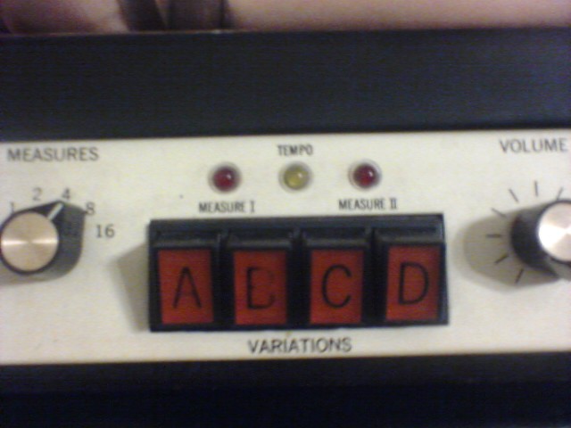 So, I found this beauty at a yardsale for the low low price of fifteen dollars. Not exactly sure what this thing is worth, but it sounds AWESOME. I am gonna assemble a little cheapo board for it, as i ran it through my digitech death metal, rrr and flashblack delay (in that order) to great effect. It gets very crunchy and industrial sounding with a bunch of dirt on it. The variation switch takes each beat selection and cycles through 4 different modes of the same beat in a set number of measures. very cool. breaks up the monotony a bit.