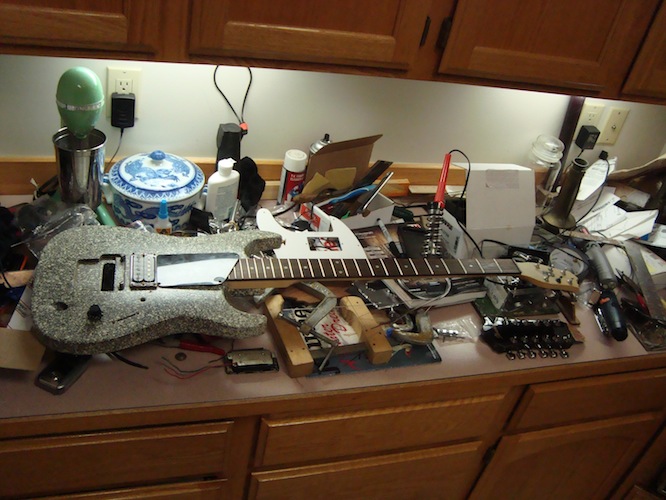 Got a cool cheap V project in the works.. just gotta see if I have all the screws I need and to find a bucker-to-strat conversion plate I know I have… somewhere…