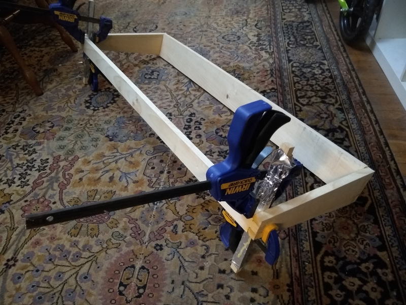 I only had access to four clamps, so I had to glue the frame in two overnight sessions.