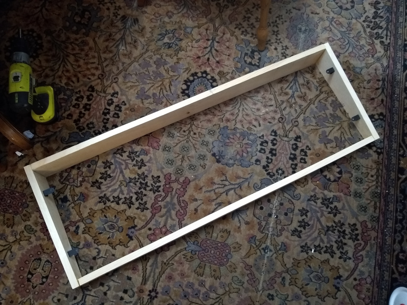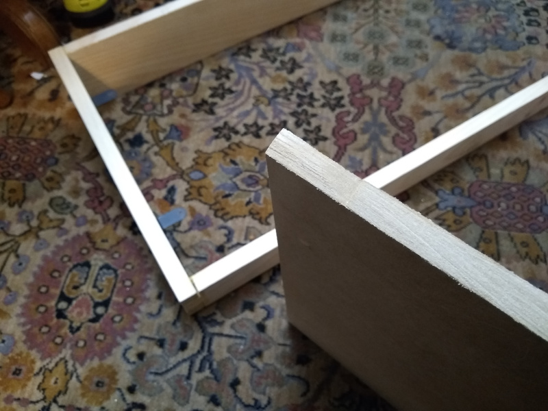 First shot of the fully glued frame, with enough brackets to dry fit the top.