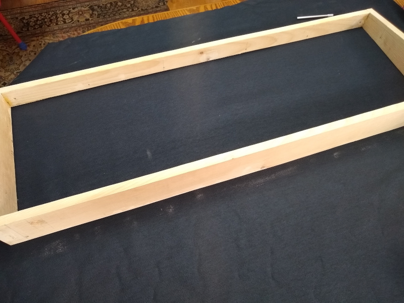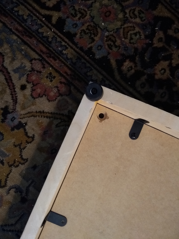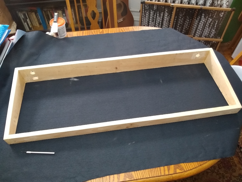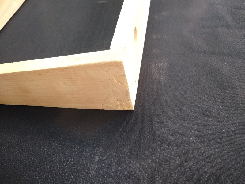 It's hard to tell from these pictures, but I painstakingly hand-shaved one edge of the top so that when it rested on the brackets it would rest flush with the back of the frame, despite being at an angle. I would later go on to shave down the top edge of the back of the frame to match this angle.