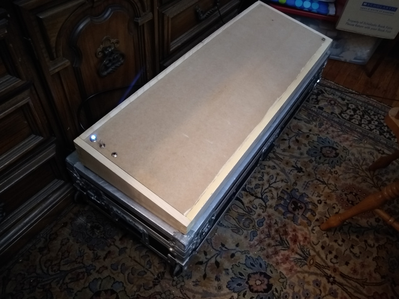 I had long-since settled on building the board myself, but first I wanted to find a big enough case so I could build to fit a case I knew existed. This was some DJ's gig box, so it was segmented inside and unevenly padded, and I spent a day or two ripping all that garbage out. I wish I had taken pictures of that process, but I didn't. It was frustrating and time-consuming because I didn't have any idea what tools to use. The case still has a few holes on the outside that I'll ultimately need to plug, since I won't be using the board while it's inside the case, just transporting it as such. That's another project. It measures around 45" x 18" on the outside.
