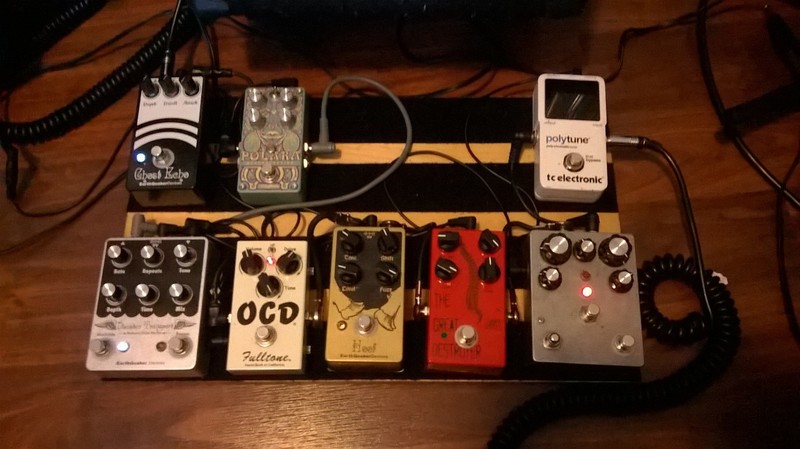 So I've come to the conclusion that fuzzes, delays, and reverb are the only effects I really like. I've gotten tons of other effects, (octaves, chorus, phasers, wah, etc) but the always get taken off my board after a short amount of time and get sold. so heres my board. I'd like to add a Buzzz, and maybe change out the ocd, but otherwise I'm happy.