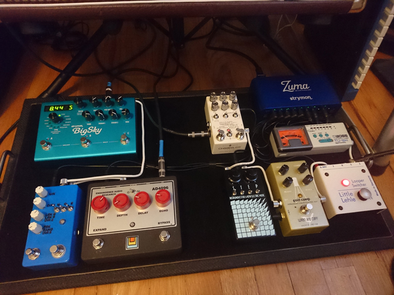 corpusjonsey wrote:I haven't posted in a while. I sold almost everything and started over. Anyway, here it is Lehle > Gold Comp > Step > Warped Vinyl > amp > effects loop out > AD4096 > CT5 > Big Sky > amp.