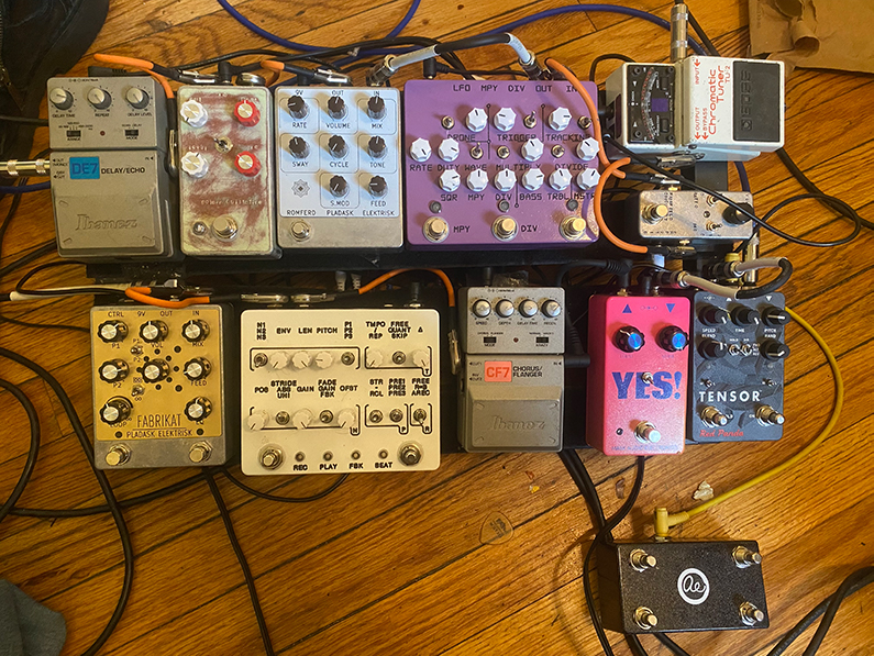 hi ILF!!!! long time player first time poster. here's the board i've been slowly adding to for years. newest addition is the fairfield accountant, which is a "holy shit never turn it off pedal". updated my tensor and have that running to a remote4. signal chain goes from the tuner and out at the fabrikat, literally just in a line from right to left, top to bottom. nothin crazy.